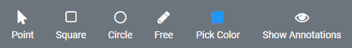 To create annotations on the asset click on annotate on the main menu. The toolbar will display all available annotation tools: