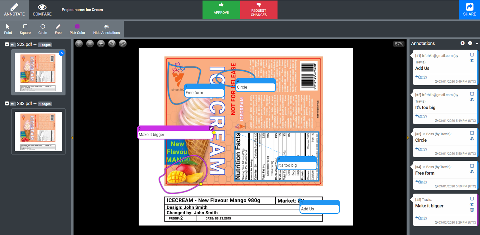 When done with annotation users need to make the decision. Click on Approve or Request changes.